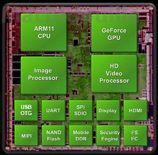 En effet, outre un CPU ARM, le Tegra embarque une mini Geforce capable de gérer de l'affichage 3D et se voit même capable de décoder des flux vidéo 720p, de quoi transformer le baladeur en mini lecteur de salon.