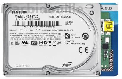 Il s'agit d'un disque dur 1,8" dont la capacité atteint les 250 Go. Ce n'est pas une réelle prouesse, Toshiba ayant à son catalogue un modèle de 240 Go. En revanche, comme le montre la photo, il n'a pas de connecteur PATA ou SATA, mais directement un USB 2.0 dont l'électronique est noyée dans celle de contrôle du disque. Il est donc clairement destiné à se retrouver dans des boîtiers en externe. Ceux qui décideront de l'intégrer auront seulement à faire fabriquer un moule aux bonnes dimensions, à couler les coques et à visser le disque dedans avant de le commercialiser. Ils pourront certainement économiser quelques euros sur la production de ces disques externes.