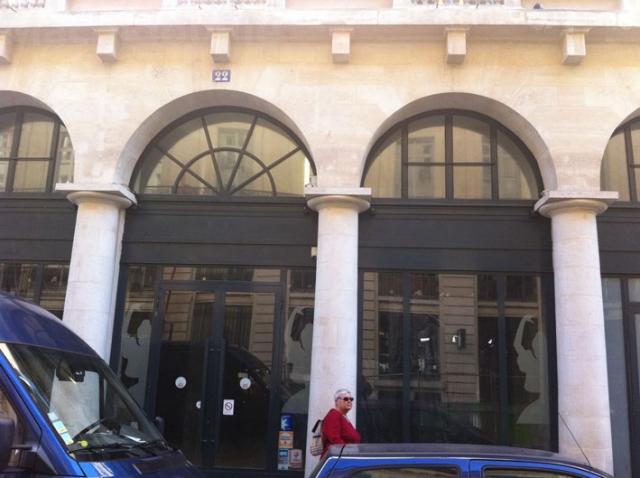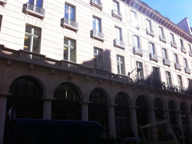 Les traits bleus représentent les surfaces ouvertes vers l'extérieur de l'Apple Store. En rouge ce sont les surfaces concernées par les nouvelles adresses données par Apple. Voici une photo du côté Chaussée d'Antin.