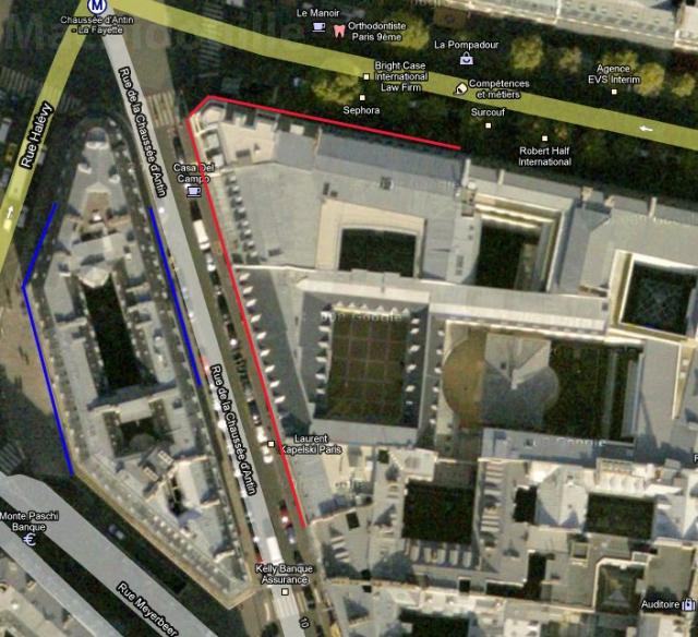 Il s'agit des 21-23 boulevard Haussman et 16 à 26 rue de la Chaussée d'Antin. Voici un plan pour éclaircir les choses.