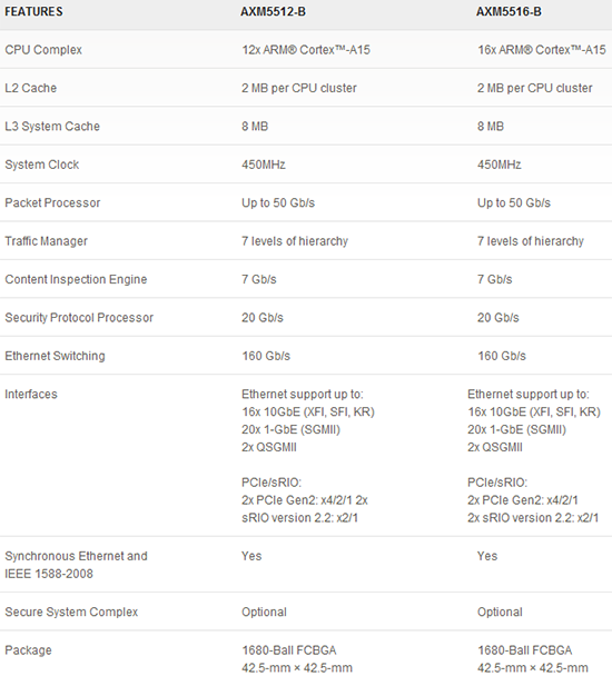 Ces puces AMX seront dotées en fonction du modèle de 12 à 16 cœurs Cortex A15, les plus puissants mais ici proposés à une fréquence relativement basse, 450 MHz, ce qui permet d'en abaisser la consommation. Le choix de nombreux cœurs à faible fréquence est aussi conditionné par l'usage spécifique de ces puces, dont l'essentiel du travail est hautement parallélisable.