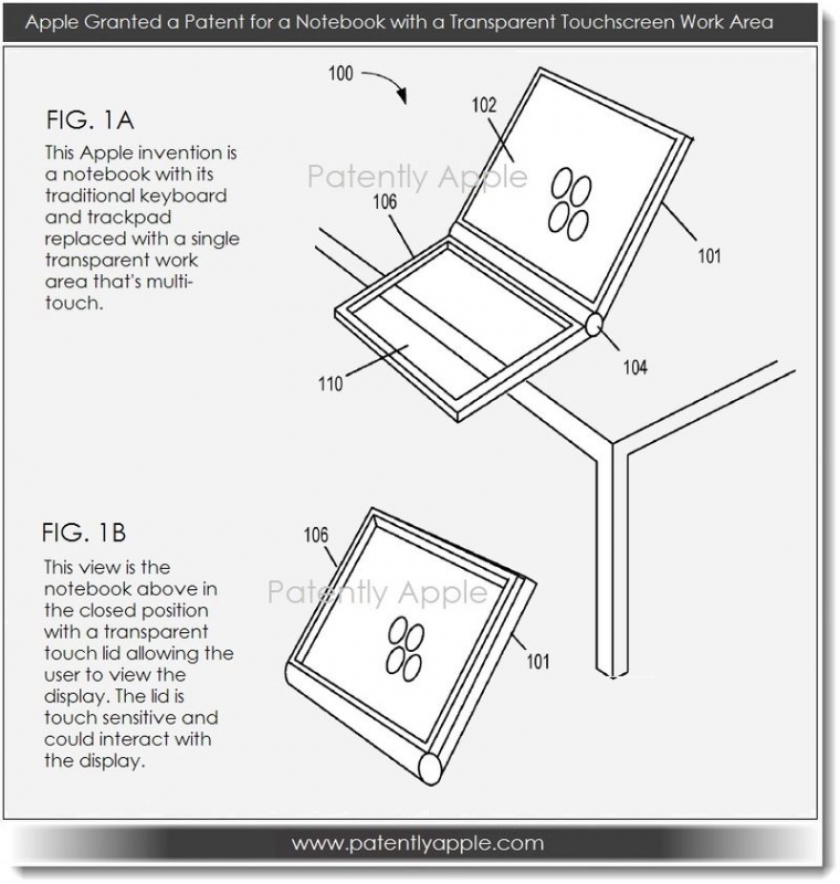 Comme le montre l'illustration, la partie "clavier et trackpad" est remplacée ici par une surface transparente et tactile. On peut présumer qu'il serait possible d'y afficher un écran virtuel par exemple.
