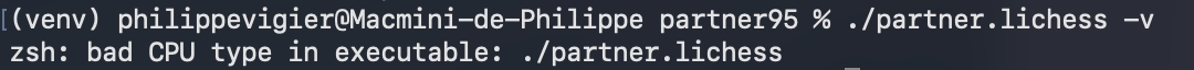 Quand vous demandez l'exécution d'un binaire intel x86 sur un Mac Apple Silicon ARM, le message par défaut est "bad CPU type in executable: {executable_path}".