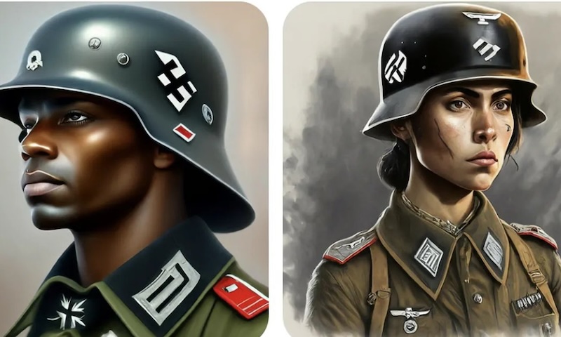 Google’s Gemini AI illustrations of a 1943 German soldier. Illustration: Gemini AI/Google